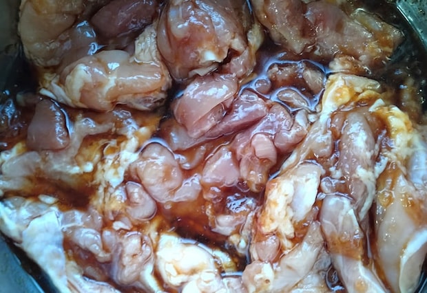 漬けダレにいちごジャムを使っているせいか、鶏肉自体はやさしい甘さに仕上がっています。