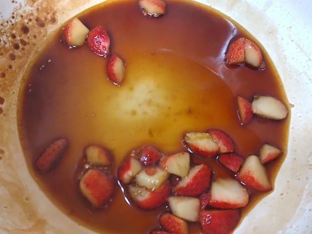 2. 鍋に[いちごソース]の材料を混ぜ合わせ、強火で煮詰める。