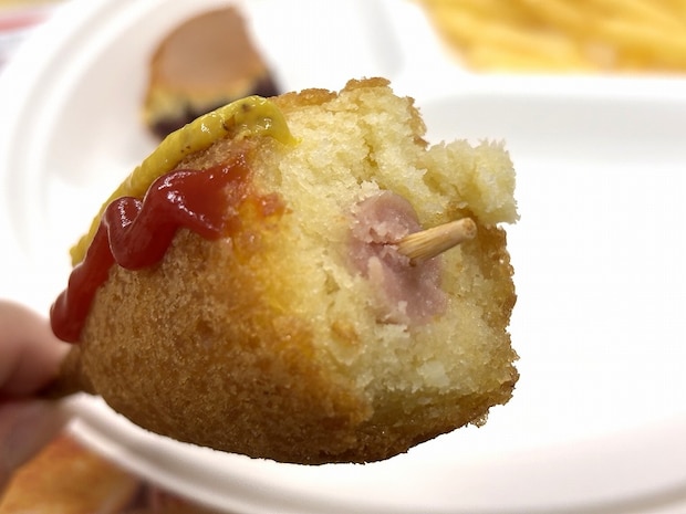 このおいしさのひみつは、特製のミックス粉を使用しているから。個人的には、ケチャップやマスタードはいらないと感じたほどで、そこにソーセージの塩味が加わることによって、大人にもうれしい味わいです。1本が60gとすこ~し小さめなのもニクイ仕様。小腹を満たしたり、ビールのお供にしたりと、絶妙なサイズ感です。