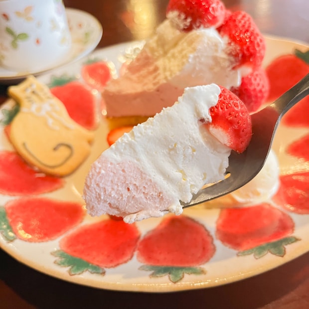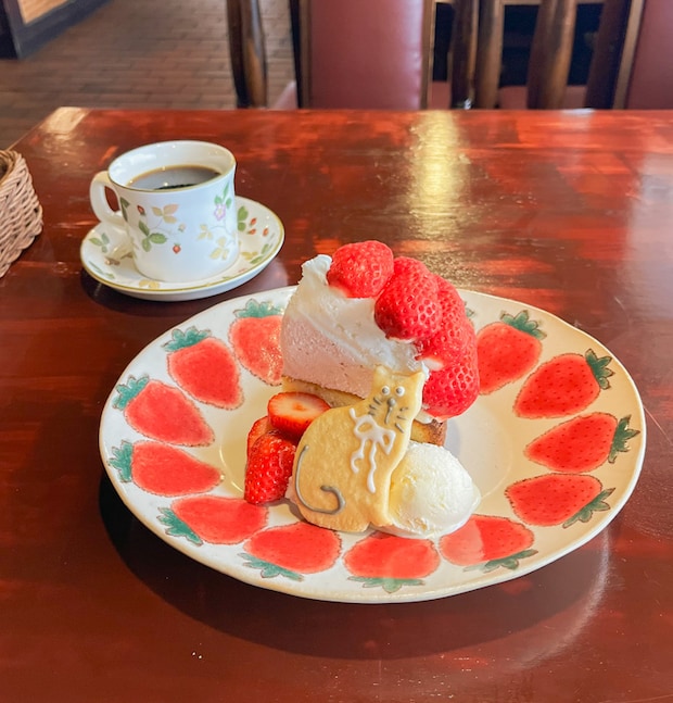 しかもこの日は大好物のいちごタルトでテンションは最高潮に!いちご柄のお皿と猫ちゃんクッキーも、悶絶級の可愛さでした♥