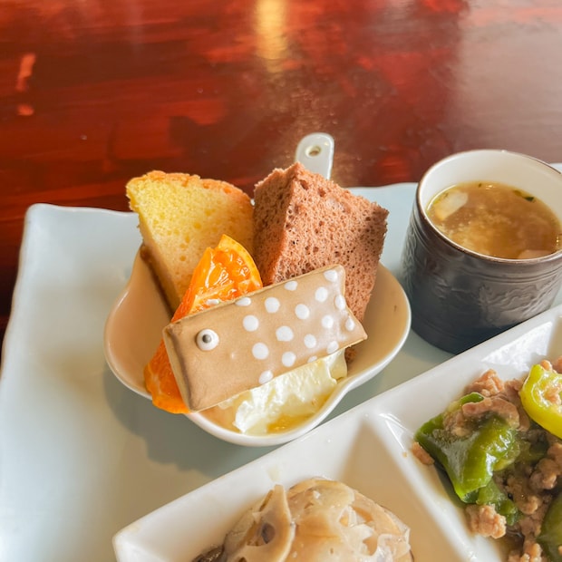 プチデザートに添えられていたのは、なんと鯉のぼりのアイシングクッキー!
