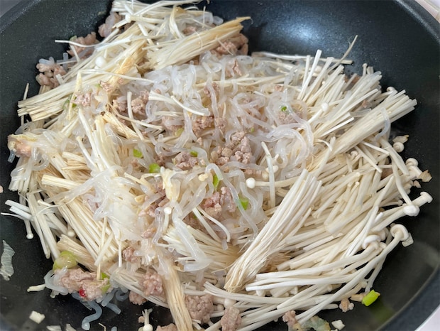 えのきがしんなりして、全体がなじんだらOKです。