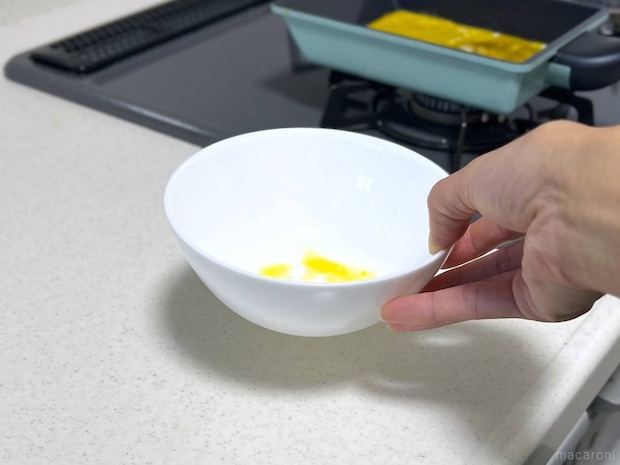 ご覧の通り、器の側面に卵液が垂れていません。