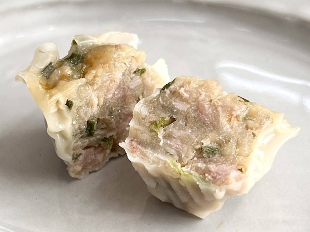 期待を胸に食べてみると、シウマイらしいビジュアルとは裏腹に、味はちゃんと餃子。口に入れた瞬間、ニラとにんにくの風味がふわっと広がり、見た目とのギャップに思わず戸惑います。