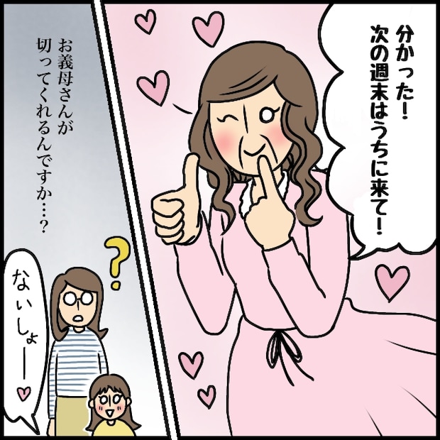 すると義母は、「分かった!次の週末はうちに来て!」と可愛らしくウインク。もしかして義母が髪を切ってくれるのかな・・・そんな期待を抱きつつ、次の週末、私と娘は言われた通り義父母の家へ向かいました。