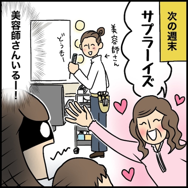 すると、美容師さんがいるではありませんか!なんと義母は、いつもお世話になっている美容師さんを、私たちの髪を切るためだけに自宅へ呼んでくれていたのです。というか、美容師さんって家に呼べるんだ。正直、その発想はありませんでした。