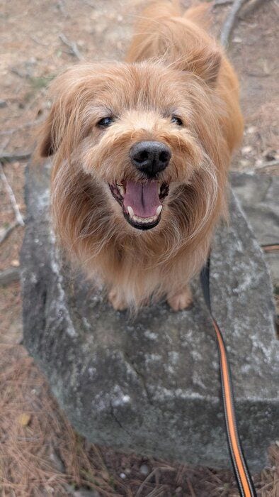 ある日の散歩の時、てんすけはお気に入りの岩の上に乗っておりました。