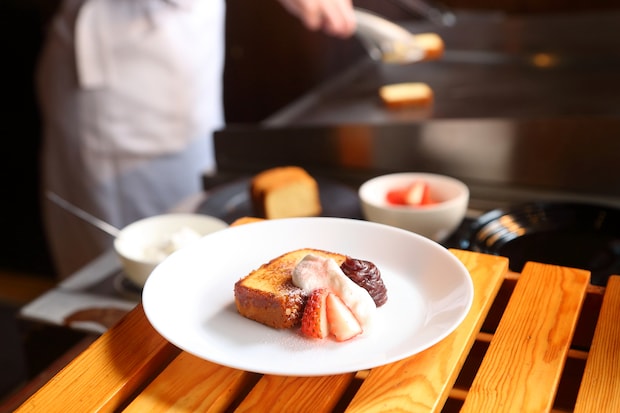 パフォーマンスコーナーでは、カリッとバターで焼かれた「三河みりん風味のあんバター焼きカステラ」や、いちごと甘夏のソースが爽やかな「いちご大福風モンブラン」など和洋のスイーツの絶妙なコラボが見どころ。