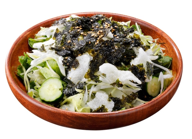 きゅうりやビタミン大根、わかめ、長ネギに、えびせんと韓国のりを加え、香り豊かなネギ塩だれで仕上げた。価格はS400円、L690円。