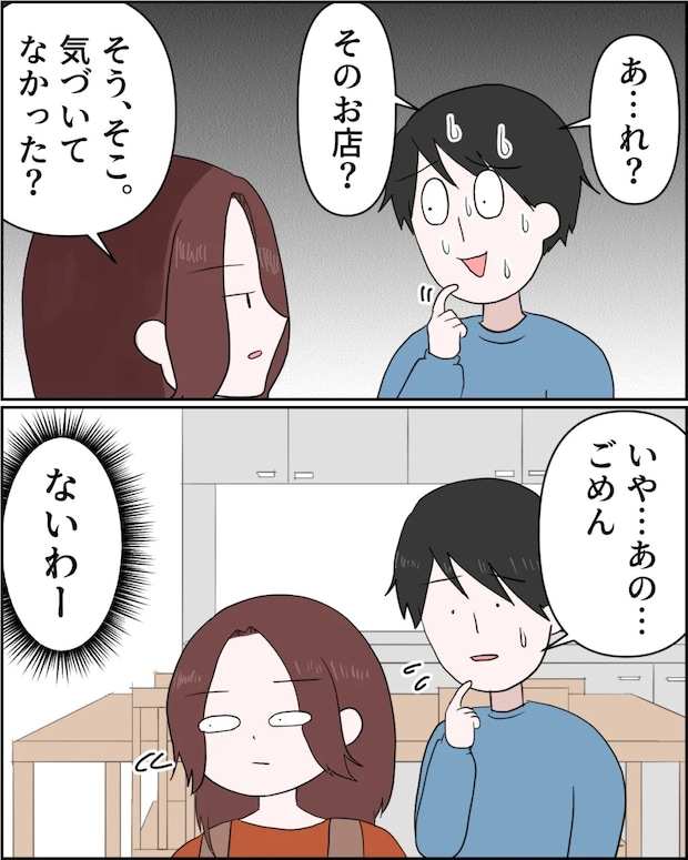 「あ・・れ?そのお店?」と焦った様子でそう言われ、「そう、そこ。気づいてなかった?」真顔でそう言う私に「いや・・あの・・ごめん」謙介が謝るも完全にスルー。「ないわー」と心の中で呟くのでした。