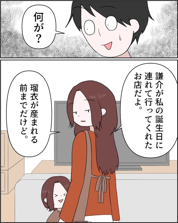 「何が?」と何にも気づいていない様子の謙介に、「謙介が私の誕生日に連れて行ってくれたお店だよ。瑠衣が産まれる前までだけど」私が呟くようにそう言うと、