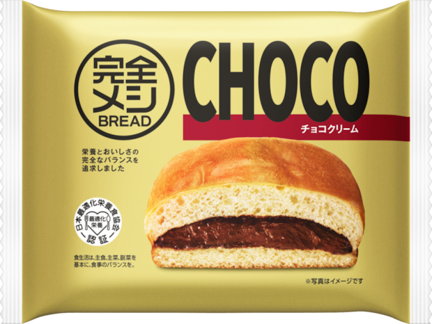 「完全メシ BREAD」は2商品を展開する。くちどけがよく、やさしい甘さのチョコクリームをふわふわ食感のパン生地で包んだ「完全メシ BREAD チョコクリーム」と、タマネギのコクとスパイスの辛さを効かせたカレーフィリングを包んだ「完全メシ BREA カレー」の2種類。いずれも賞味期限は製造日から90日間で、常温で保存できる。希望小売価格は各税別298円。チョコクリームは1個当たり8.7gのたんぱく質を、カレーは1個当たり8.4gのたんぱく質を含む。