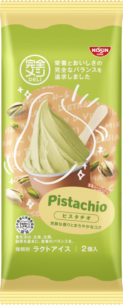 「冷凍 完全メシ DELIジェラート」は6つのフレーバー(ピスタチオ、マンゴー、ストロベリー、抹茶、チョコレート、レモン)を展開する。