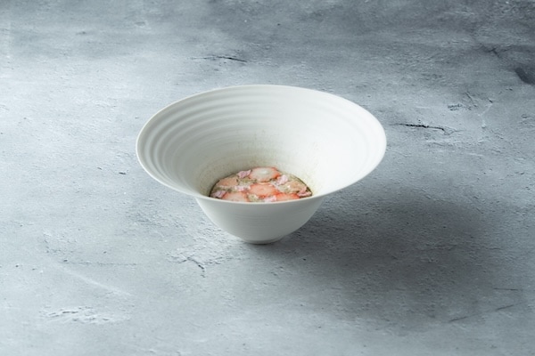 中盤に登場する「苺のリオレ仕立て」は、イタリア米に赤米を加えた牛乳がゆ(リオレ)に、桜の葉のパウダーを散らした一皿だ。甘さの中にほのかな塩気と桜の香りが漂い、桜餅を思わせる余韻に仕上げている。
