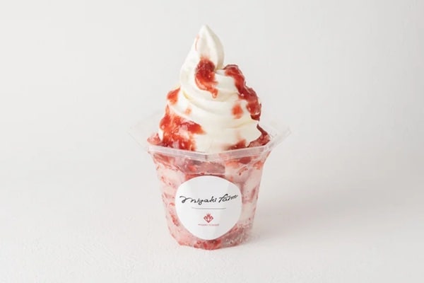 「まるごとけずりいちご」に、濃厚なソフトクリームをプラスした「まるごとけずりいちごソフト」。
