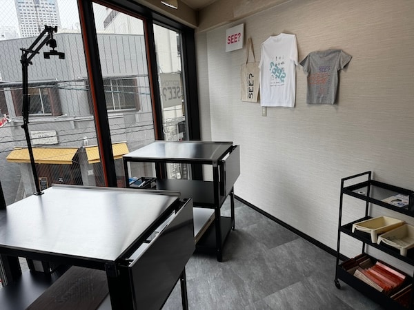 「EDITION SEE? 広島店」は、神戸のアートギャラリー発のブランド「EDITION SEE?」のフランチャイズ店として、国内外の気鋭アーティストのデザインを、客自身の手でTシャツやトートバッグなどにシルクスクリーンプリントできる体験型ショップとなっている。
