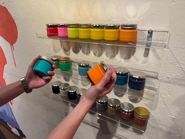 自分でインクを伸ばし、版を持ち上げた瞬間にデザインが現れる様子は、思わずSNSでシェアしたくなる動画映え抜群の瞬間だ。お店のシンボルであるウォールアートなど、店内にはフォトスポットも多数用意している。