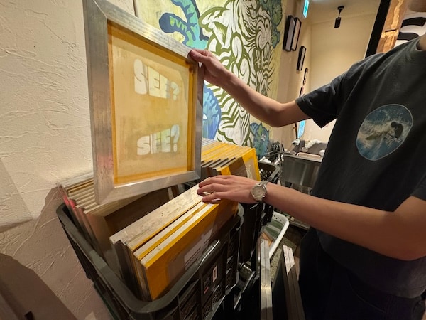 店内では、プロが使用する本格的なシルクスクリーンを用い、スタッフのサポートのもとでプリント体験が可能。インクの擦れやかすれも「自分だけのアジ」となり、愛着の湧く一点モノが完成する。