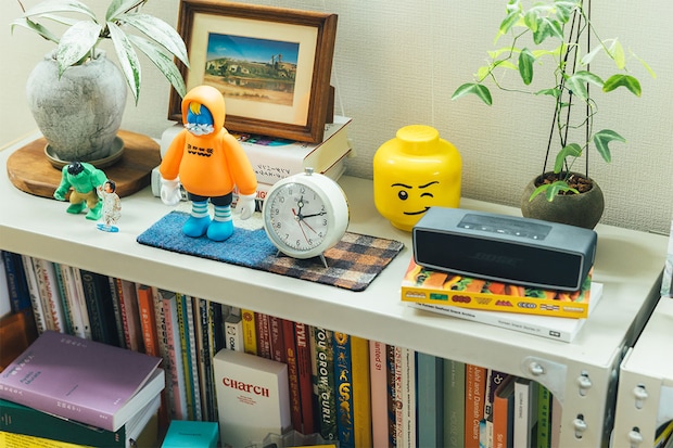 この家に住んでよかったことを聞くと、「とにかく飾るスペースがたくさんつくれたこと。棚に、窓辺に、壁面に、好きなものを置ける場所がいたるところにあって。ものの集め甲斐があります(笑)」とナツミさん。インテリアのテーマはあえて設けず、夫婦それぞれが好きなものを自由に置くのがこの家のスタイル。カラフルでチャーミングなぬいぐるみ、アメコミをモチーフにしたアメリカンな雑貨、ソウルへ行くたびに買い集めた韓国の小物……部屋中に溢れる色とりどりのアイテムたちが、この家の個性をつくりあげている。