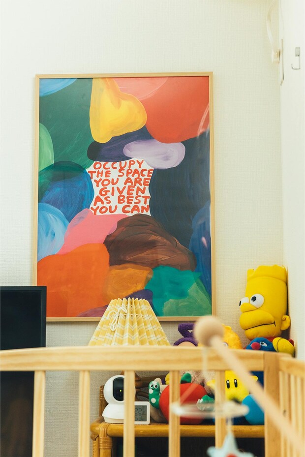 カラフルなDavid Shrigley(デビッド シュリグリー)のポスター。「東京・代々木のポスター専門店〈ナップフォード・ポスター・マーケット〉で見つけました。いつかのクリスマスに夫と一緒に選んだもの。カラフルな色使いで自然と元気が湧いてきます」