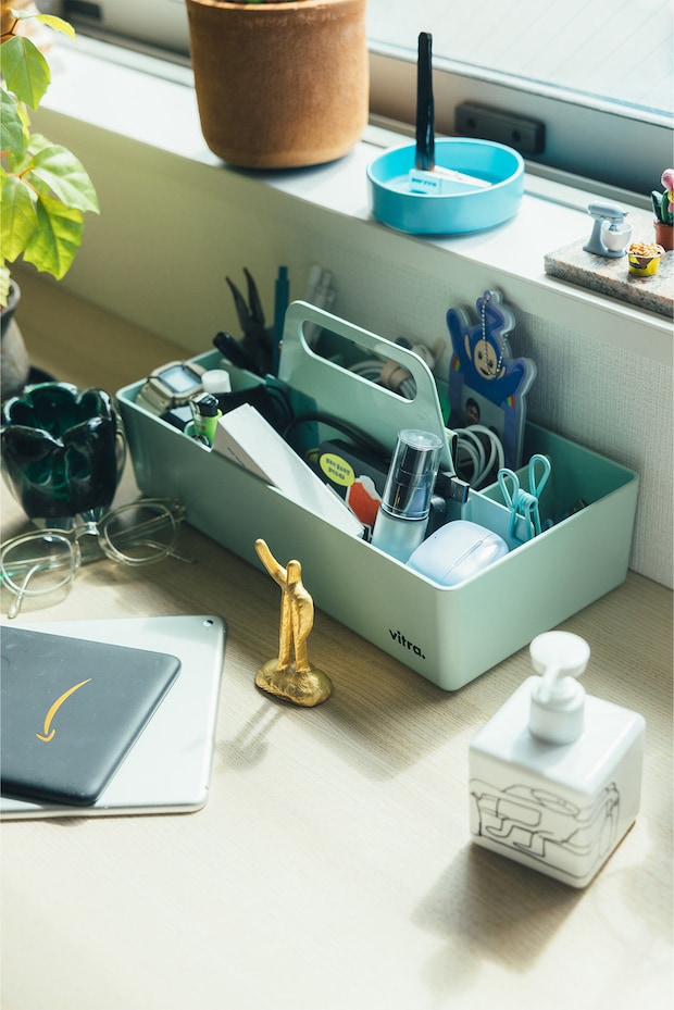 細々とした卓上アイテムは、〈vitra〉のツールボックスにまとめて収納。