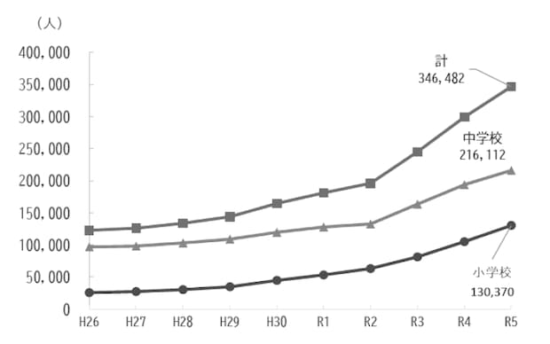 2014年の不登校児童生徒数は12・3万人でした。そして、令和5年、不登校状態の小中学生は、全国で34万人を超えています(文部科学省調査※2)。その数は3倍近くに膨れ上がっているわけです。