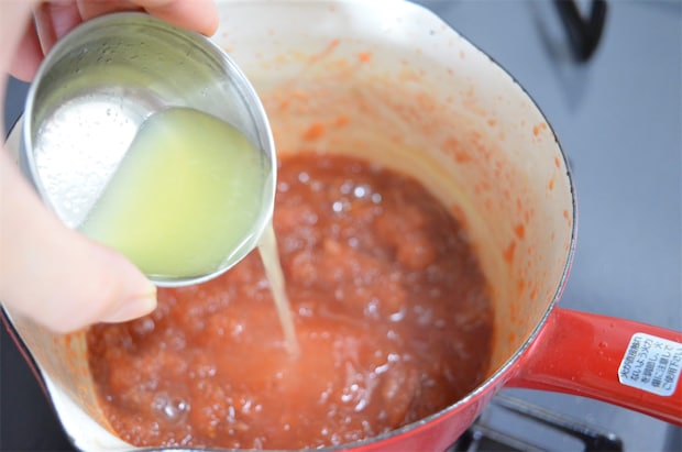5. 水分がなくなってきたらレモン汁を入れて沸騰させ、火を止める。
