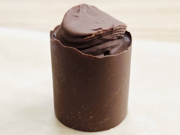 チョコレートを200g使用すると、このような状態に仕上がります。上までしっかりコーティングしたい人は、チョコレートをもう少し多めに使いましょう。