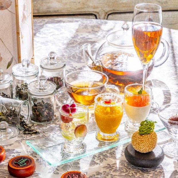 ウェルカムティーの「桃園冷茶」から始まり、三国志に登場する女性たちをイメージしたこだわりの中国茶とともにいただこう。
