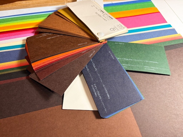十二単を連想させる色鮮やかなバリエーションの中から好きな紙を選んで作ります。色だけではなく紙の素材も種類がたくさんあります。普段の生活で紙の質感に注目することがあまりないので、選びながら手触りの違いも楽しみました♪