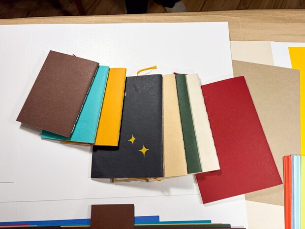 旅の思い出をノートに表現するお客様。色選びにゆっくりと時間をかけるお客様。皆さん思い思いにノートづくり体験をされていくそうです。