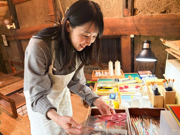 手作りとは思えないほどに細かい紙を使ったアート作品やノートが店内で販売されています。店主の豊かな発想で生まれた作品のお話をつい聞き入ってしまいます。
