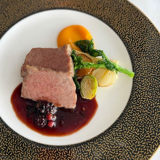 いざ食べてみると、お肉は旨みがあふれんばかり。脂は控えめで食べやすいのが嬉しい。ベリーのソースで、さっぱりいただけるのもいいですね。