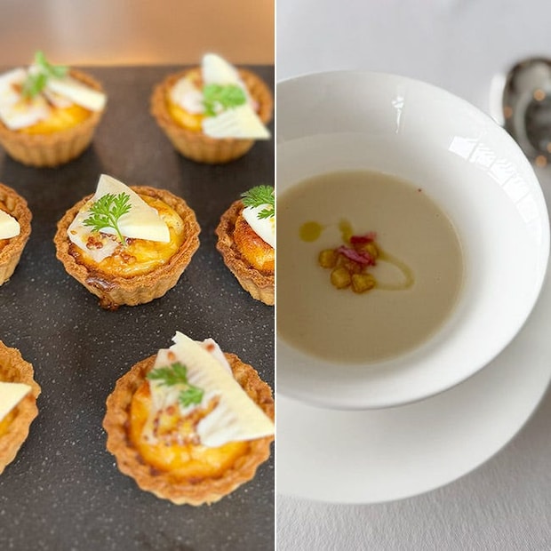 一口サイズでかわいい「タケノコと鶏もも肉のキッシュ」。タケノコが飾られていて春っぽさがありますね。タルトはサクサクで、上にはフィリングがいっぱい。マスタードも潜んでいて、すっきりとした味わいです。