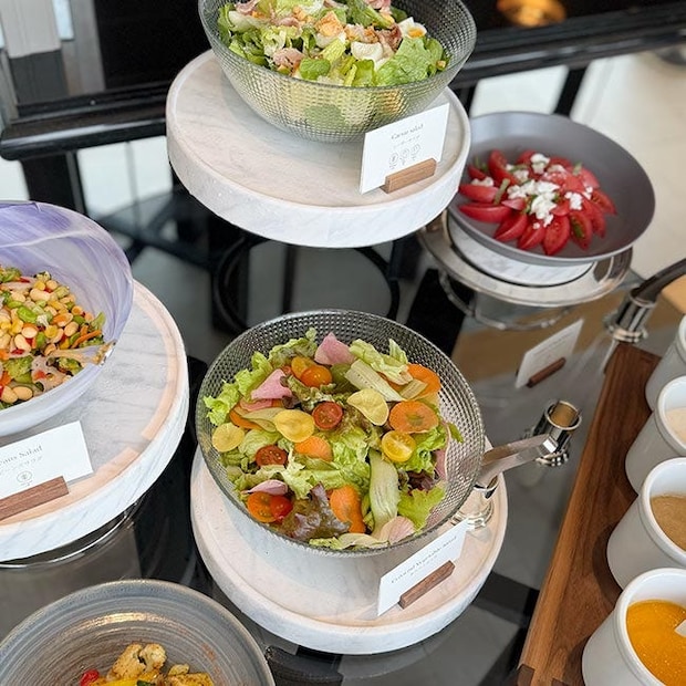 ランチコースは3種類あり、「前菜・デザートビュッフェ」「前菜・デザートビュッフェ・メインディッシュ」「前菜・デザートビュッフェ・メインディッシュ・グラス モエ エ シャンドンブリュット付き」となっています。今回は、2つ目にして、メインディッシュをセレクト。ビュッフェを楽しみつつ、コース料理のような楽しさもあるのが魅力的だなと思いました。