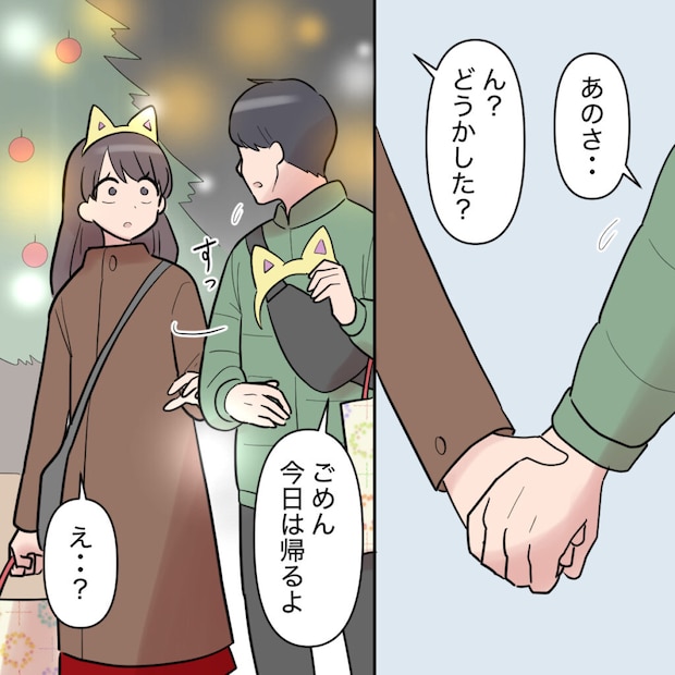 「あのさ・・・ごめん、今日は帰るよ」と、繋いでいた手を突然離されてしまいました。夜も一緒に過ごすものだと思っていた私は頭が真っ白に。クリスマスイブだからと料理もケーキも用意していたのに突然帰るだなんて、何が起きたのか理解できませんでした。