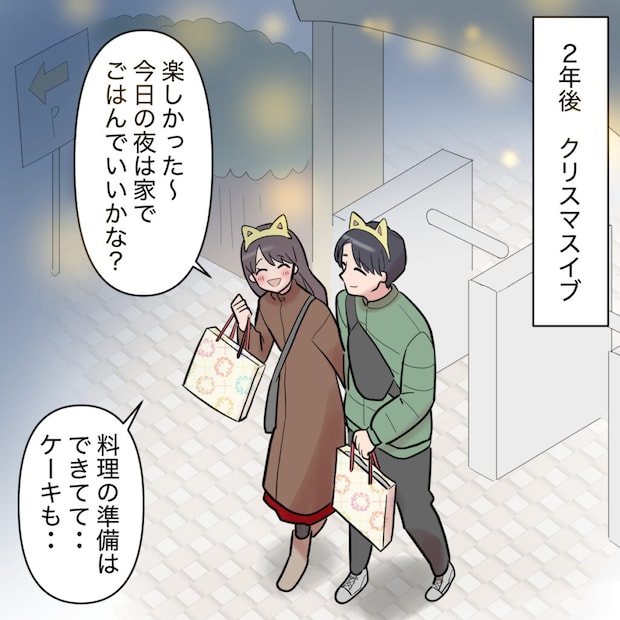 その日はシンジと2人でテーマパークへ。アトラクションやショーを満喫しているうちに、気づけば閉園時間になっていました。「楽しかった~今日の夜は家でごはんでいいかな?料理の準備はできてて、ケーキも・・・」夜も一緒に過ごすつもりで話していたその時。