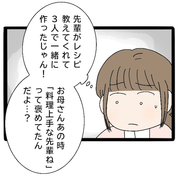 「先輩がレシピ教えてくれて3人で一緒に作ったじゃん!お母さんあの時『料理上手な先輩ね』って褒めてたんだよ・・?」一体いつから先輩に対して今のような冷たい態度をとるようになったのか全くわからず戸惑う私。