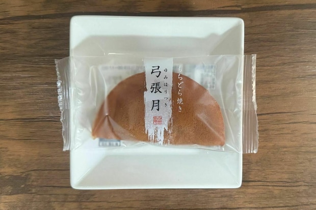 「もちどら焼き 弓張月」は、名前が示す通り、半月のような特徴的な形状をしたどら焼きです。