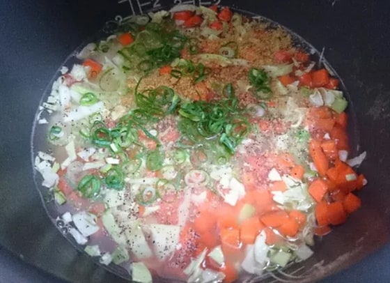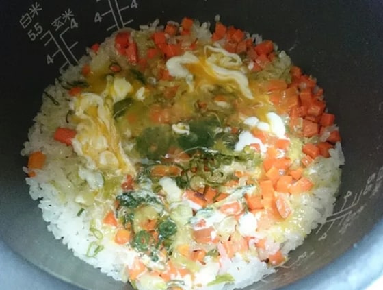 1.お米と具材を炊飯お米と材料を炊飯します。