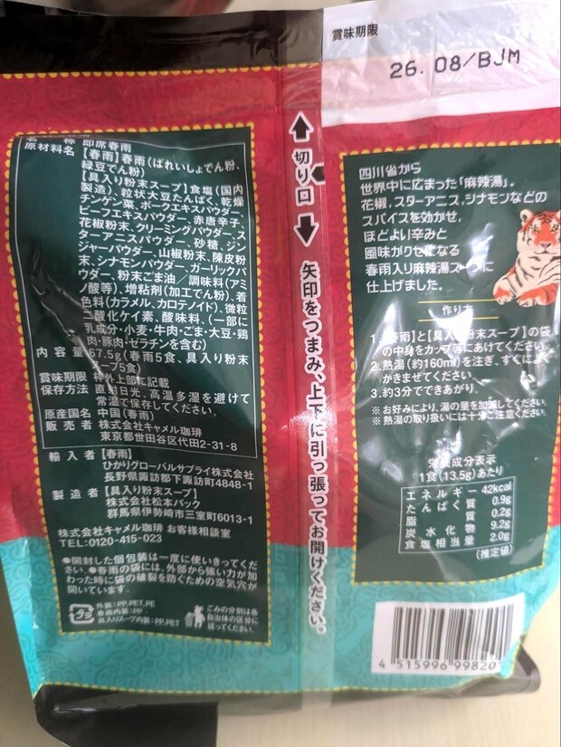 インスタントスープ感覚でお手軽な「麻辣湯春雨」