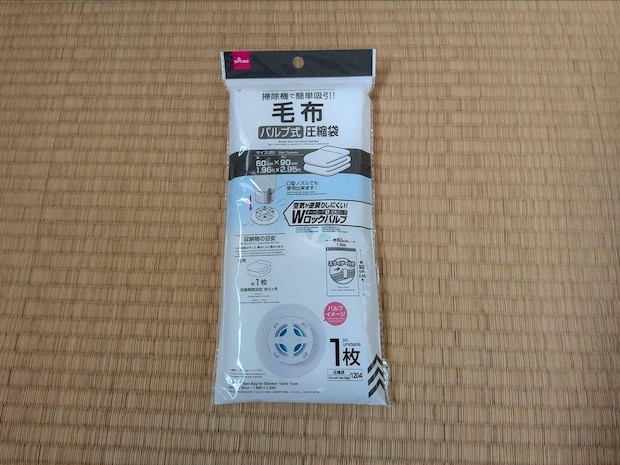 5つ目も「毛布用圧縮袋」ですが、こちらはバルブ式です。