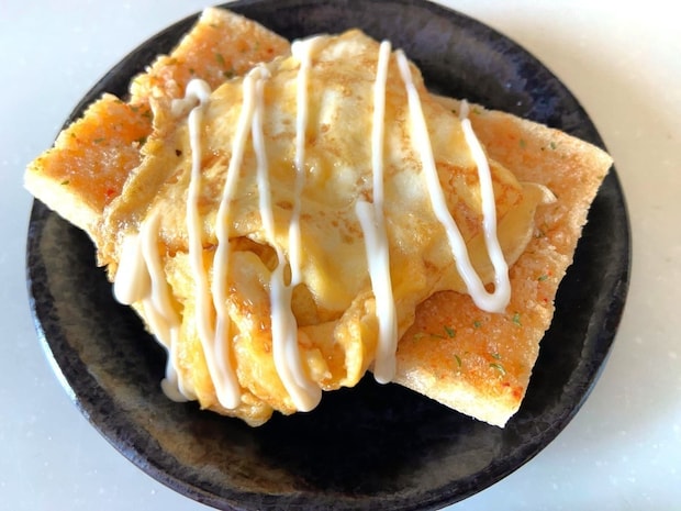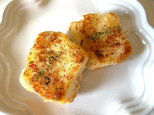 オリーブオイルとおろしにんにくを染み込ませ、フライパンで焼くガーリックトーストのアレンジです。