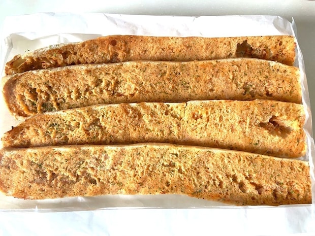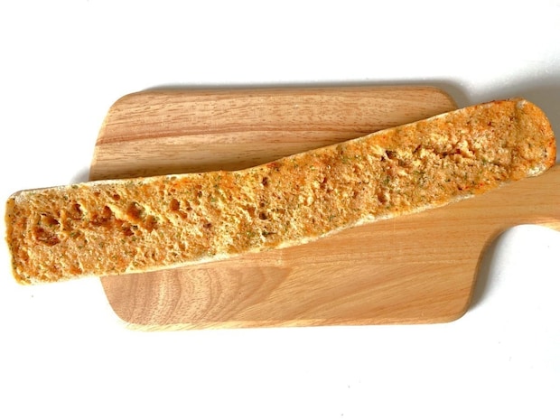 ブラックペッパーとチーズで味が付いているため、まずはシンプルにラスク風にして味わってみました。袋から取り出した段階でチーズの香ばしい香りが漂い、食欲を刺激します。
