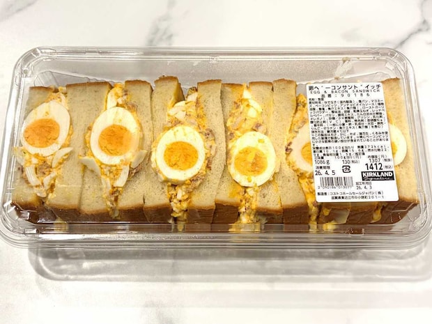 ゆで卵とベーコンビッツをたっぷり使ったボリューミーなサンドイッチなので、デリカコーナーにあるのも納得の存在感です♪