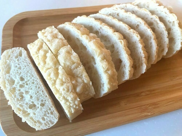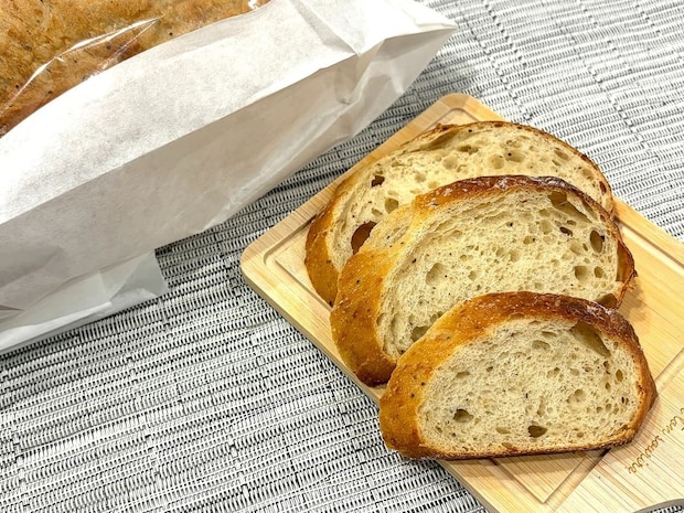 完成すると、自宅で焼き上げたことでパンの香りをひときわ強く感じられます。本場らしいバリッとした硬めの皮と、しっとり柔らかできめ細かい中の生地が特徴です。