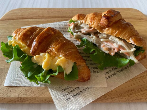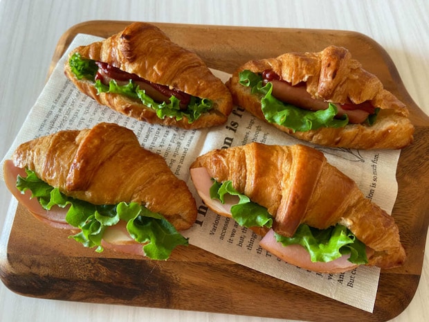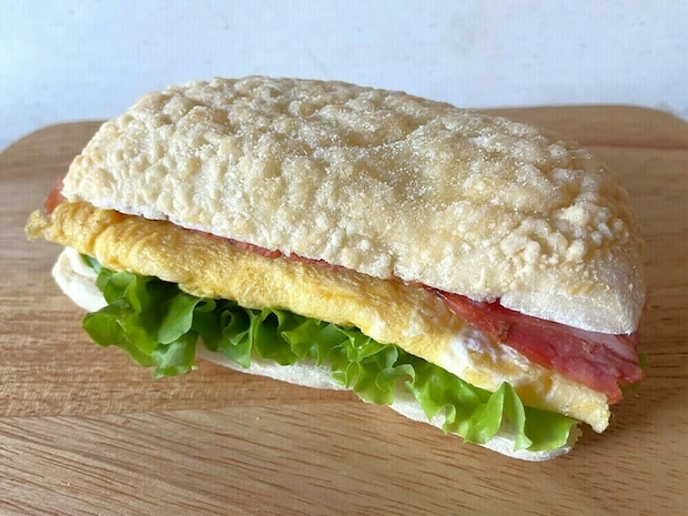 バゲットなどのハード系パンで作るのが一般的ですが、このパンで作ると柔らかい食感による違った美味しさを味わえます。