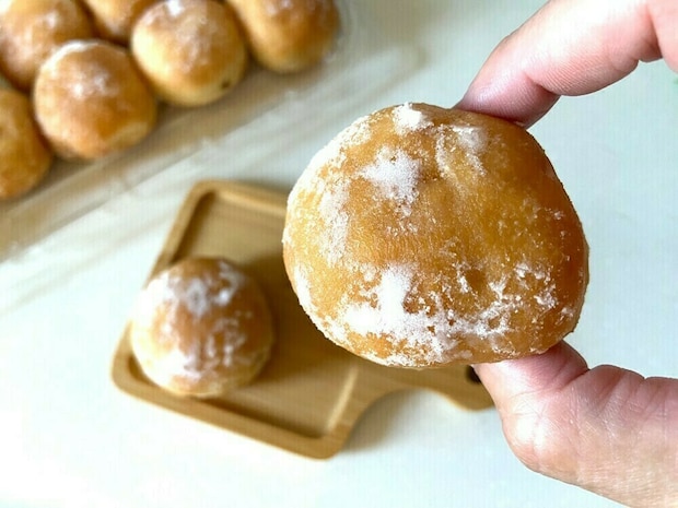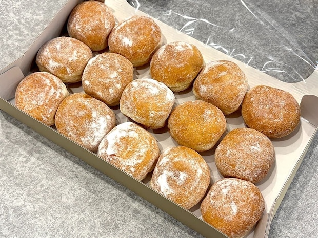 表面の粉糖がキャラメリゼされたようにカリッと香ばしくなり、中のクリームもとろけて、つい何個も食べてしまうようなやみつき感があります。