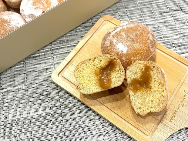 中にはキャラメルクリームが入っており、半分にカットするとクリームがとろけ出てきます。