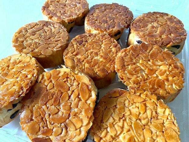 一見すると大きめの丸いフロランタンのように見えますが、ぎっしりと敷き詰められたアーモンドの下にはチョコ入りのデニッシュがあり、珍しい組み合わせの商品。